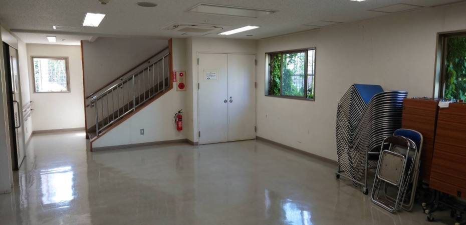 食事はグラウンド・公園ともにできません。トイレのある受付棟の2階に自販機やミーティングスペースがありますので、食べる時はそちらをご利用ください。