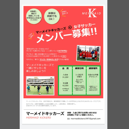マーメイドキッカーズ(中学生以上の女子)練習のご案内